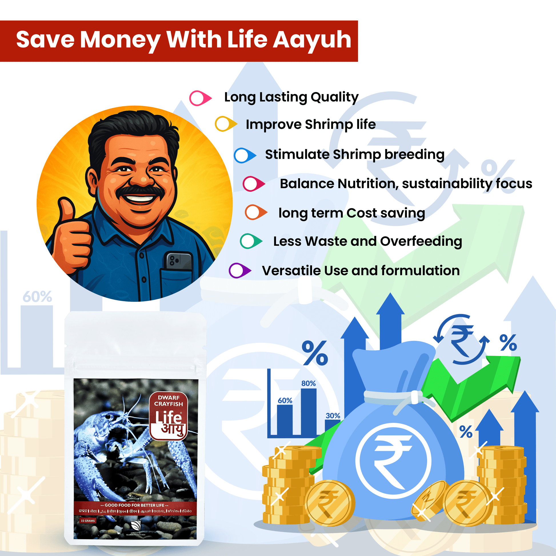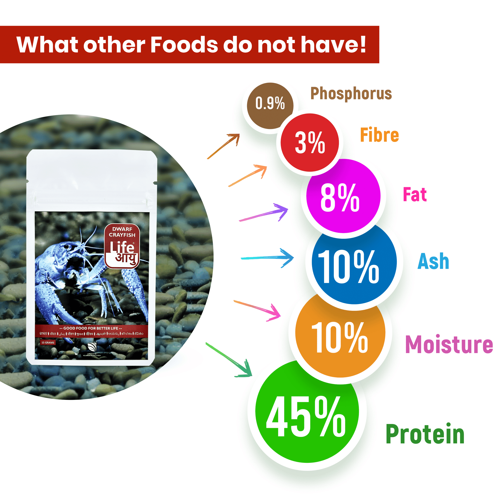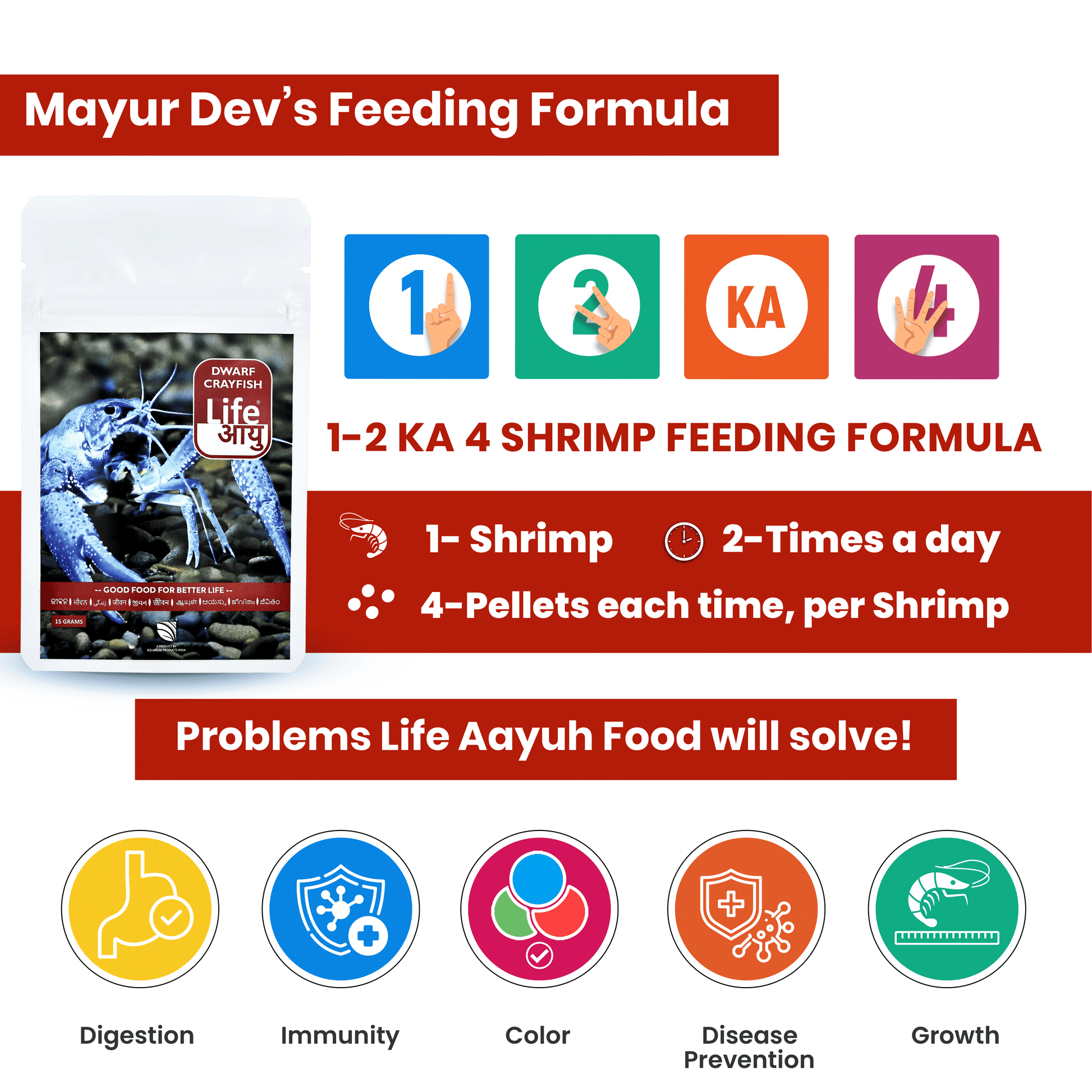 Life Aayu Dwarf Crayfish Blue Food for Breeding & Growth is a high-quality, digestion-friendly shrimp food made with handmade and natural ingredients. Formulated with a unique blend of immunity-boosting Ayurvedic herbs, this food ensures the healthy development of shrimp. Its clinically proven formula includes ingredients like fish meal, shrimp meal, spirulina, and special additives that aid in breeding, molting, and growth. This food keeps aquarium water clean, ensuring a healthy environment for your shrimp.