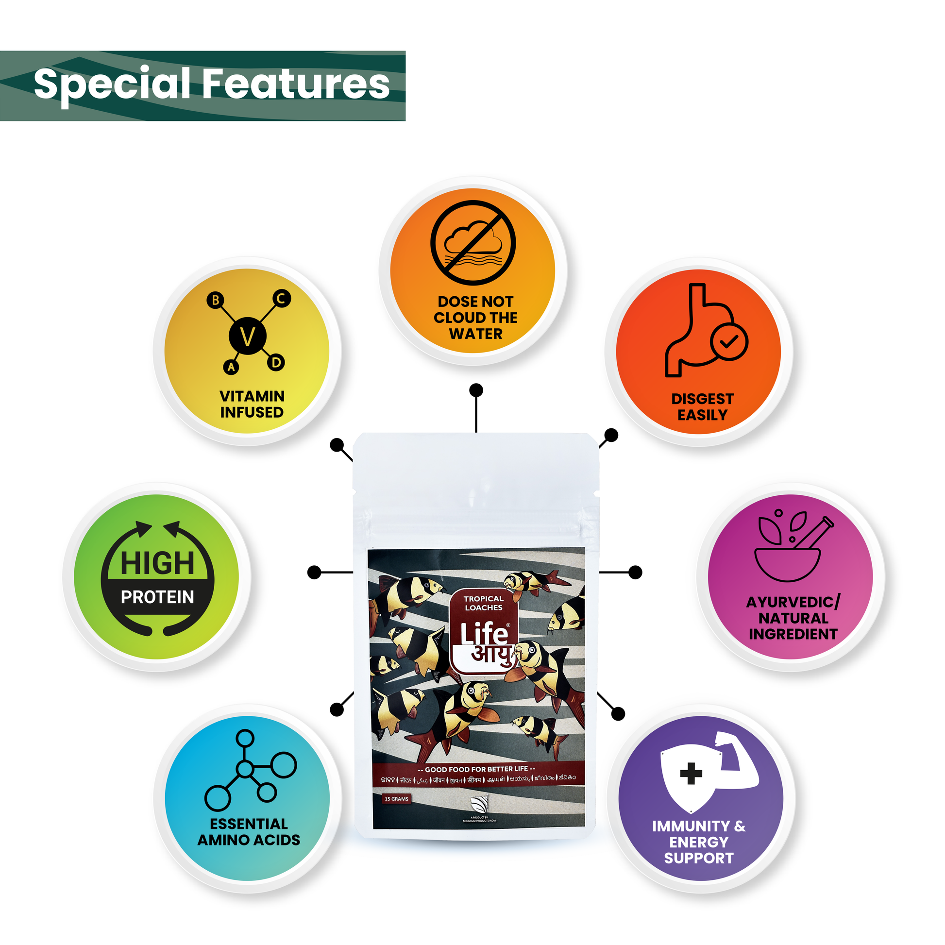 With Life Aayu Tropical Loaches 15g, your Loaches receive a nutrient-packed diet that supports their unique needs. Combined with Stay Calm Plus, this product helps maintain a stress-free, healthy aquatic environment for your tropical fish.