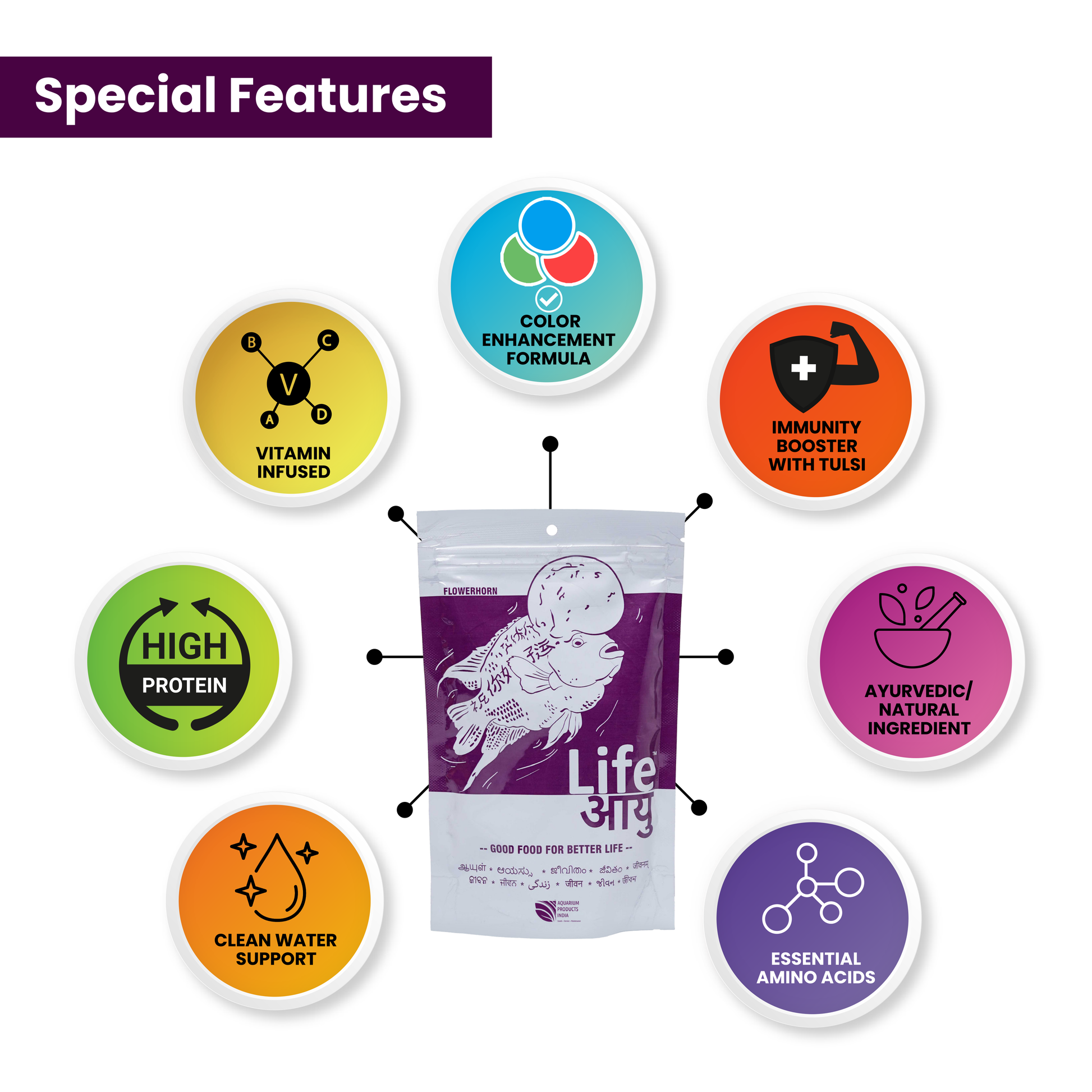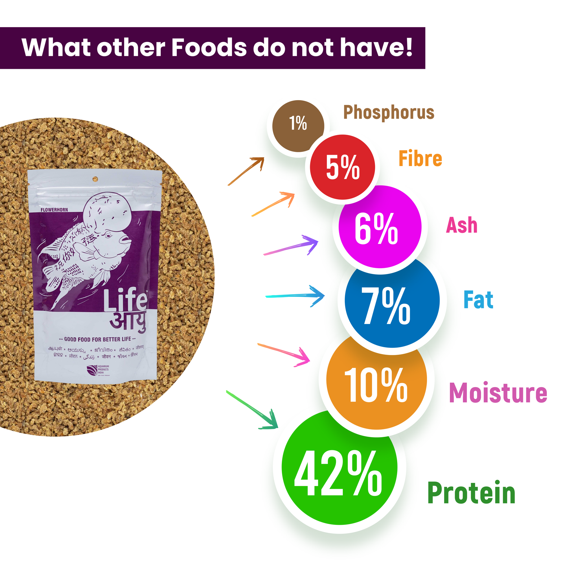 Your Flowerhorn isn’t just a fish—it’s your pride. Give it the feed it deserves: powerful, natural, and custom-made for its beauty, aggression, and potential. Life AAYU Flowerhorn Food helps it glow and grow, the healthy way.