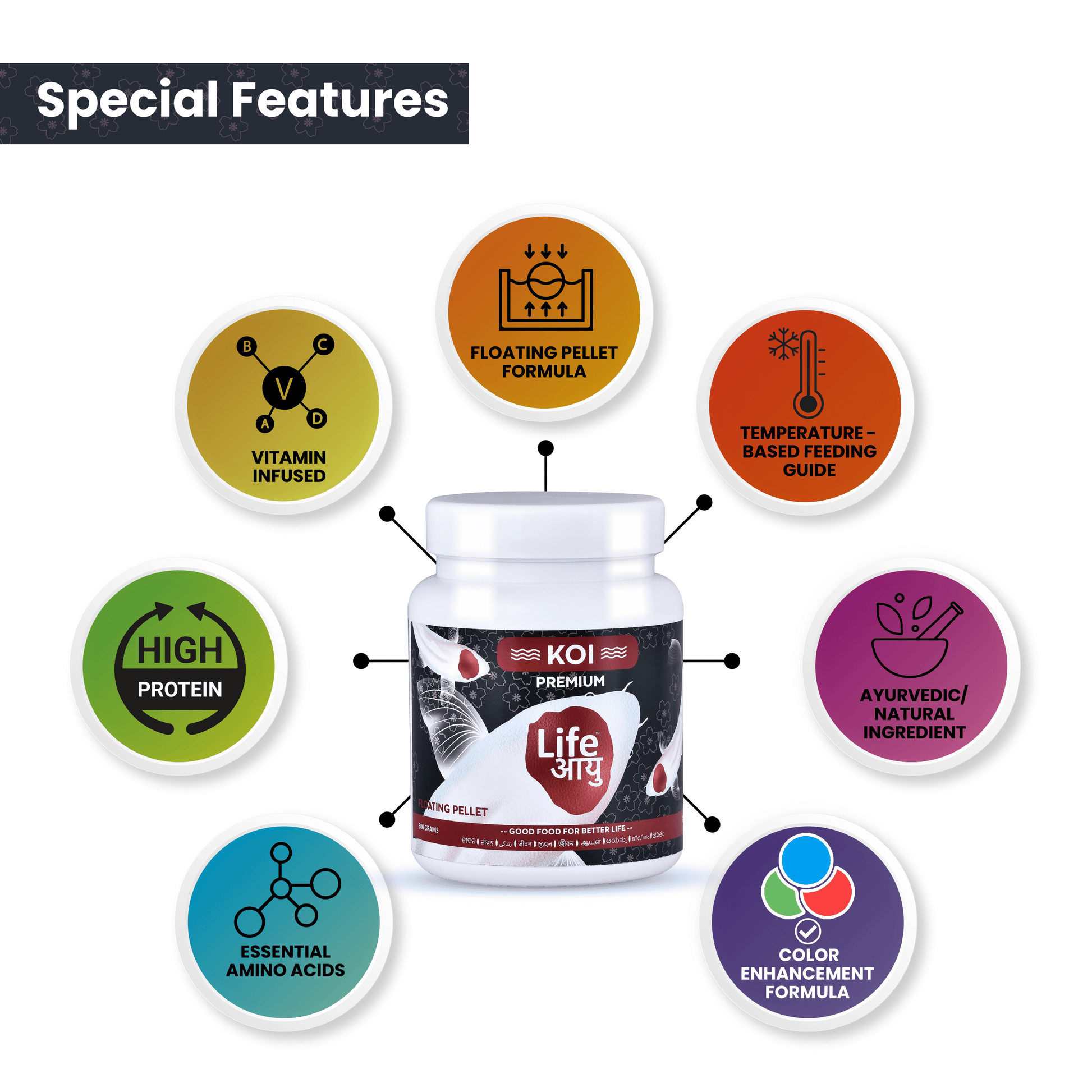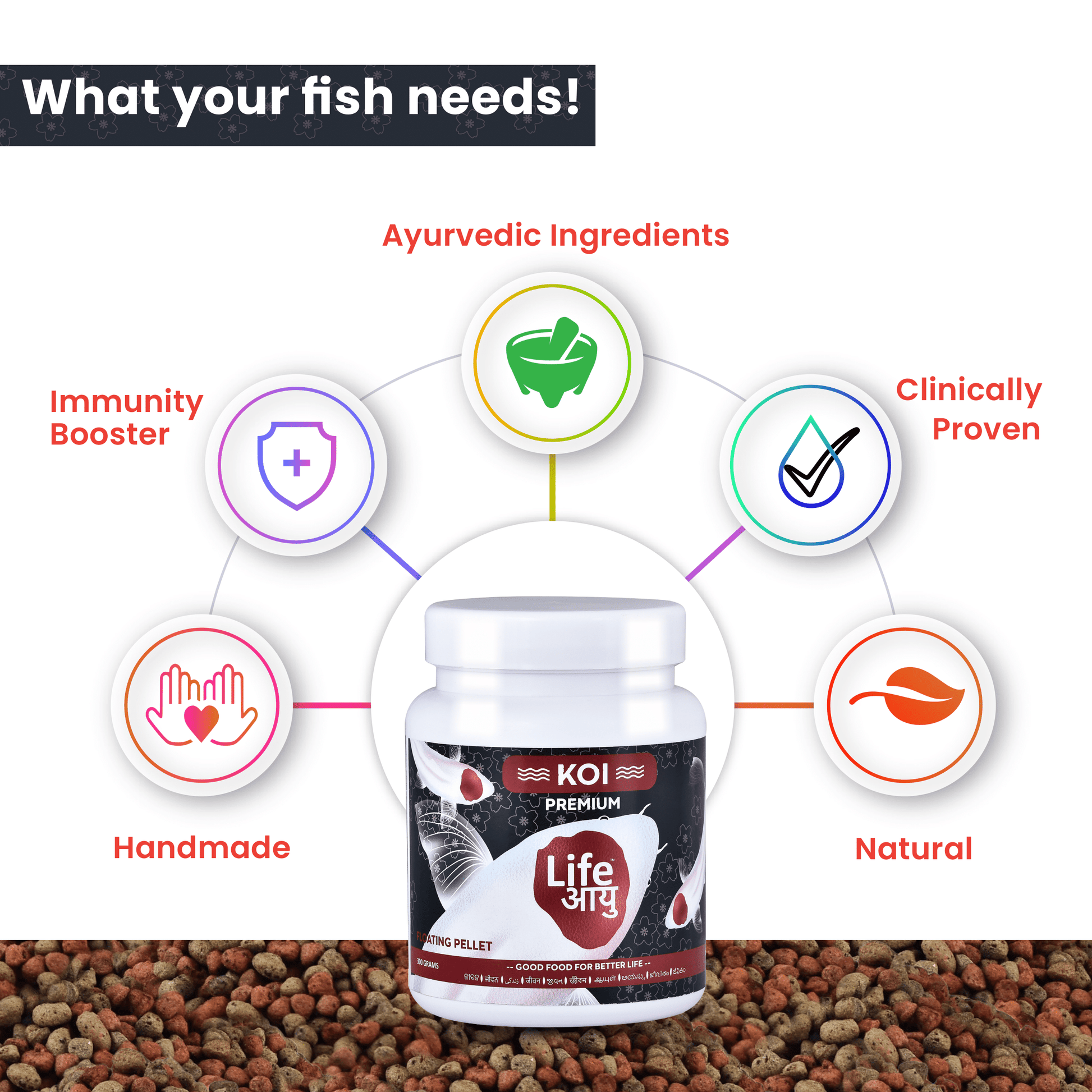 Life Aayu Koi Premium Fish Food – Ayurvedic Floating Pellet for Japanese Koi Breeds | Growth & Color Enhancer |