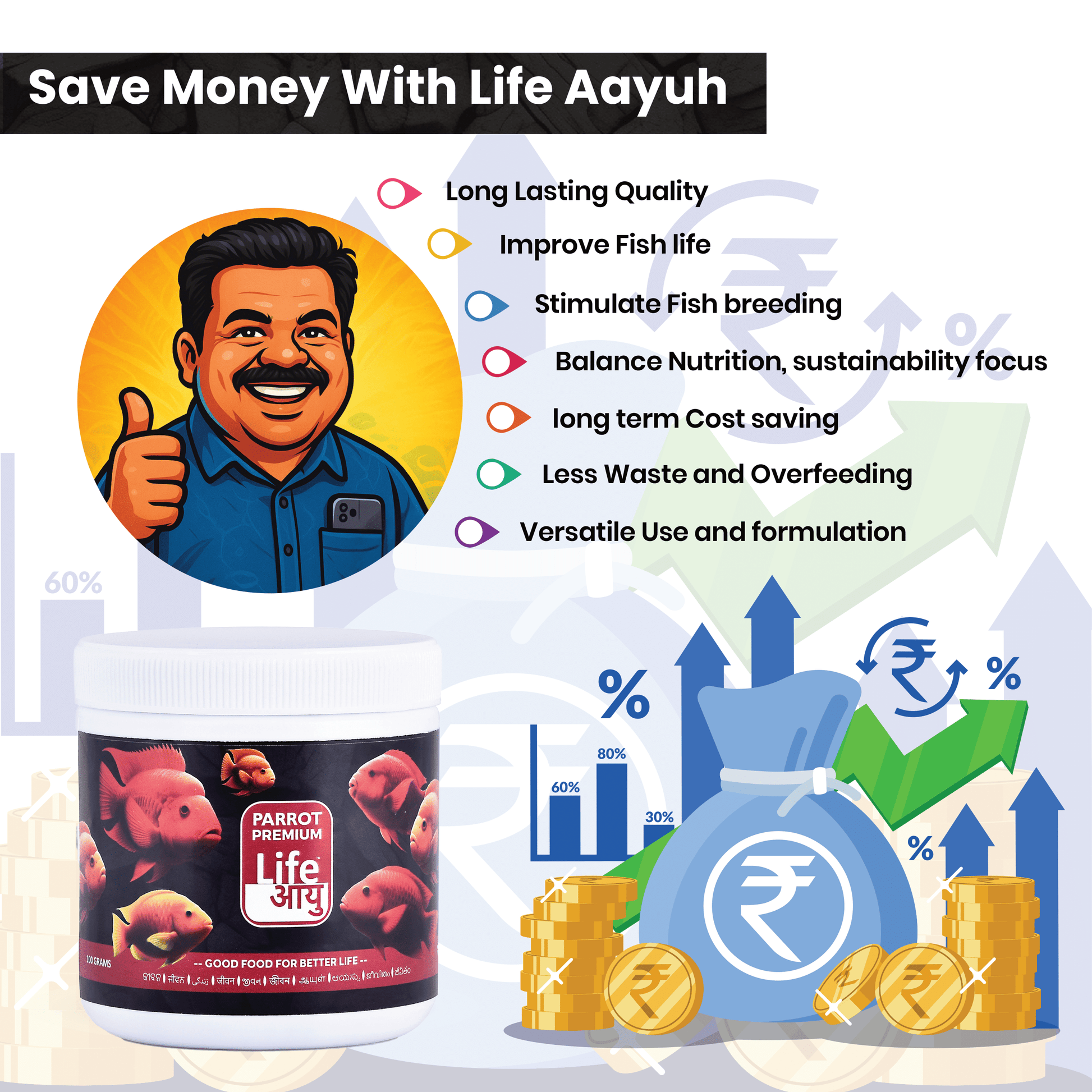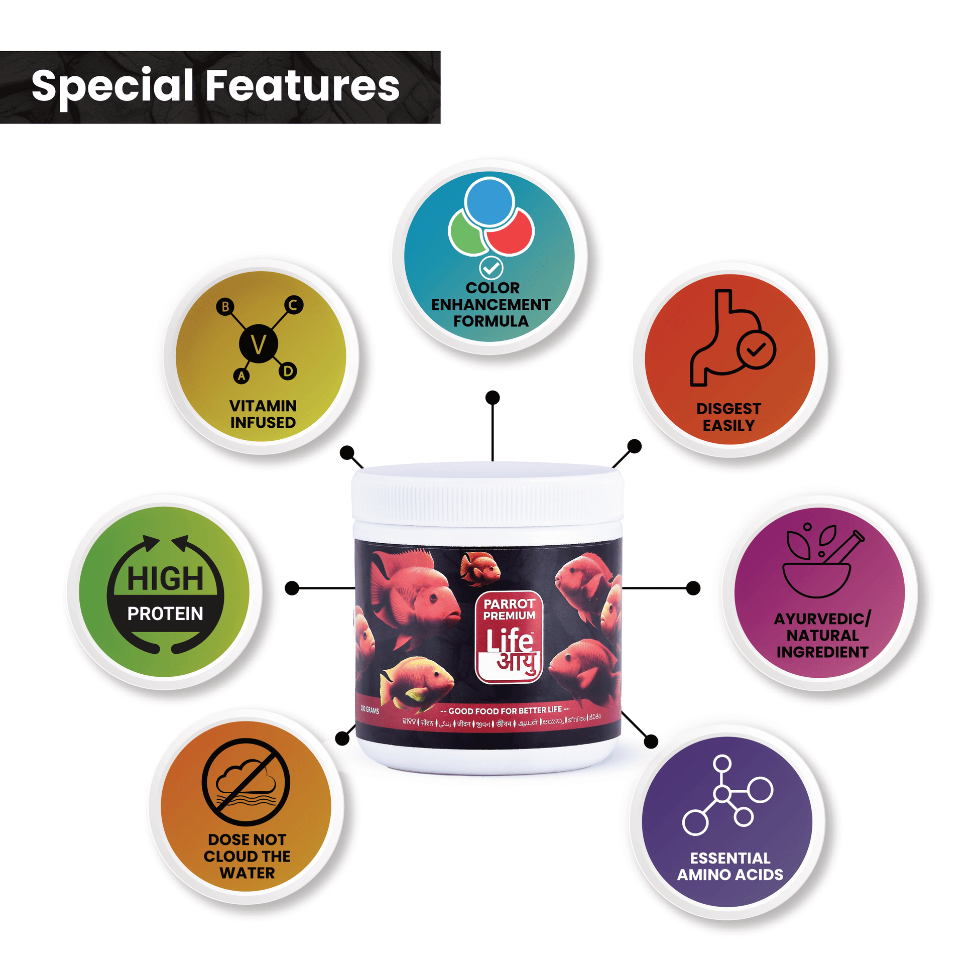 Give your parrot fish the vibrant color and powerful immunity they deserve. Switch to Life AAYU Parrot Premium Fish Food—a trusted blend of nature and nutrition.