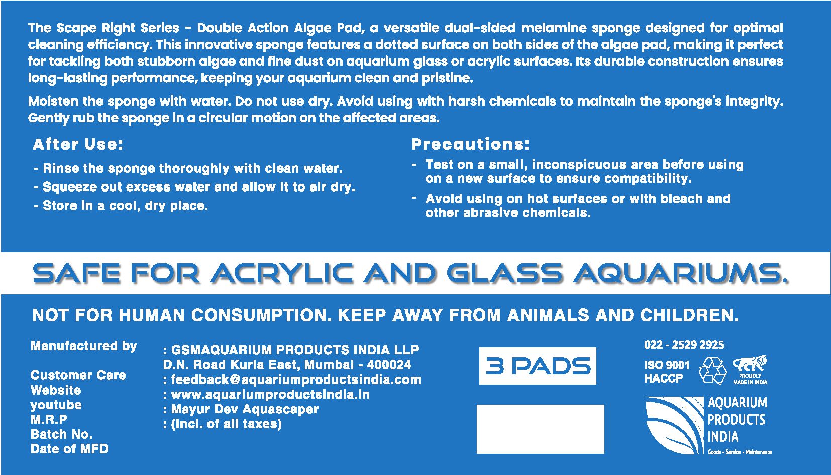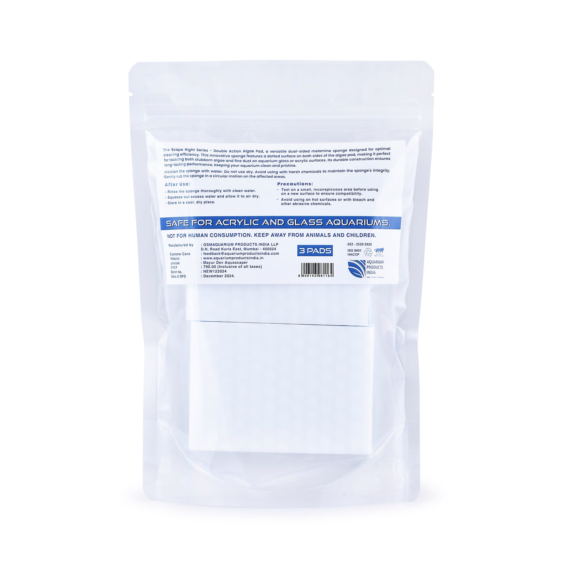 The MAYA Double Dotted Algae Cleaning Pad is a premium-grade aquarium glass cleaner that combines smart design with safe, scratch-free technology. Whether you're maintaining a planted freshwater setup, a vibrant reef tank, or a display terrarium, this pad ensures your viewing panel stays crystal clear — without damaging delicate glass or acrylic surfaces. Unlike traditional scrubbers or risky steel tools, the MAYA Pad is crafted with micro-abrasive double-dot melamine foam, offering maximum cleaning with minimal effort. It lifts off algae, calcium deposits, and water spots with gentle, circular motions — no harsh chemicals needed.