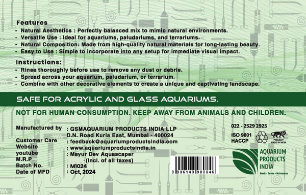 - Versatile Use: Ideal for use in aquariums, paludariums, and terrariums, this decorative gravel complements a variety of setups. It blends seamlessly with plants, stones, and wood, enhancing the visual appeal of your landscape.