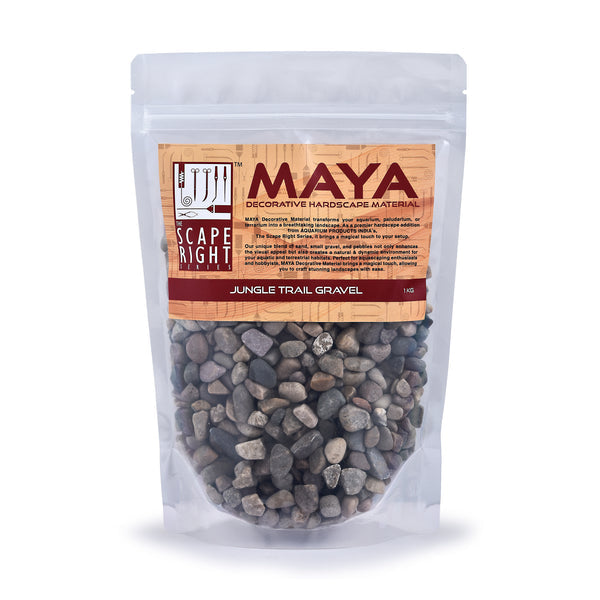 MAYA Jungle Trail Gravel transforms your aquarium, paludarium, or terrarium into an enchanting natural landscape. This premium gravel is designed for aquascaping enthusiasts who want to elevate their setups with natural beauty and easy maintenance.