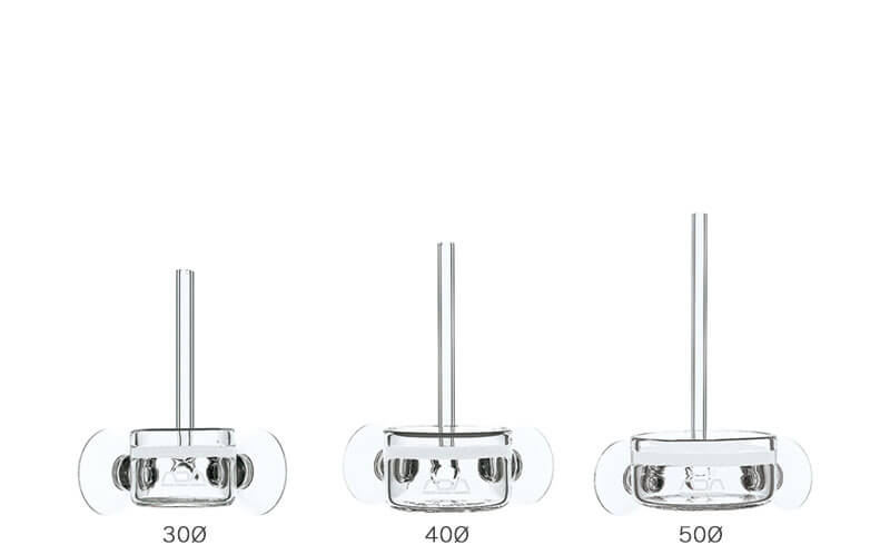 Pollen Glass Beetle has a wider diffusion filter. Unique design Beetle sits conveniently on an inside corner of an aquarium tank. For a large size tank, Beetle can be placed on multiple numbers of corners. 30Ø is suitable for 90cm size tank, 40Ø for 90-120cm tank, and 50Ø for 120-180cm tank.