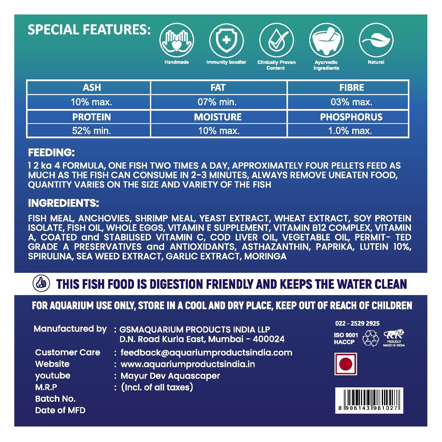 Specially blended with seaweed extract, garlic extract, and moringa, this food has medicinal properties that help with fish health. These ingredients are known for their antibacterial and anti-inflammatory benefits, keeping your fish healthy and reducing the risk of common ailments.