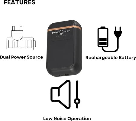 Why Choose SOBO? SOBO is renowned for its innovation in aquarium technology, delivering high-quality products that enhance the aquatic environment. What is the Importance of Air Pump in an Aquarium? Air Pumps play a critical role in sustaining and enhancing the aquatic environment, facilitating the gas exchange processes necessary for maintaining healthy fish and plant life. Why Choose the SOBO A-320 Air Pump? The SOBO A-320 is a compact, single-outlet aquarium air pump designed to enhance oxygenation and water circulation in both freshwater and saltwater tanks. What power sources does the SOBO A-320 support? The A-320 operates on both AC power (110V–240V, 50/60Hz) and DC power through a built-in rechargeable battery. It can be charged via USB, making it convenient for use during power outages or outdoor activities. What is the air output capacity? The pump delivers an air output of approximately 2 x 3 liters per minute. What are the operating modes of the A-320? The A-320 features a touch-sensitive control panel with two operating modes: Continuous Mode: Provides a steady airflow, running up to 15 hours on a full charge. Intermittent Mode: Operates in 10-second intervals, extending battery life up to 30 hours. Is the A-320 suitable for travel or outdoor use? Yes, its lightweight and portable design, along with USB charging capability, makes it ideal for: Fish transportation, Outdoor fishing trips and use in areas without access to electricity. Its compact size ensures easy portability. Specifications: Model: A-320; Voltage: AC 110V-240V; Frequency: 50Hz; Battery: DC 5V 2600mAh; Power: 2W; Max Output: 2 x 3L/min; Pressure: 2 x 0.02Mpa Why Choose Tunai Store? At Tunai Store, We import products directly from manufacturers, ensuring authenticity, affordability, and reliability. Our dedicated customer support team is always available to assist you. If you have any questions about our products, feel free to contact us through our helpline—we're happy to help!