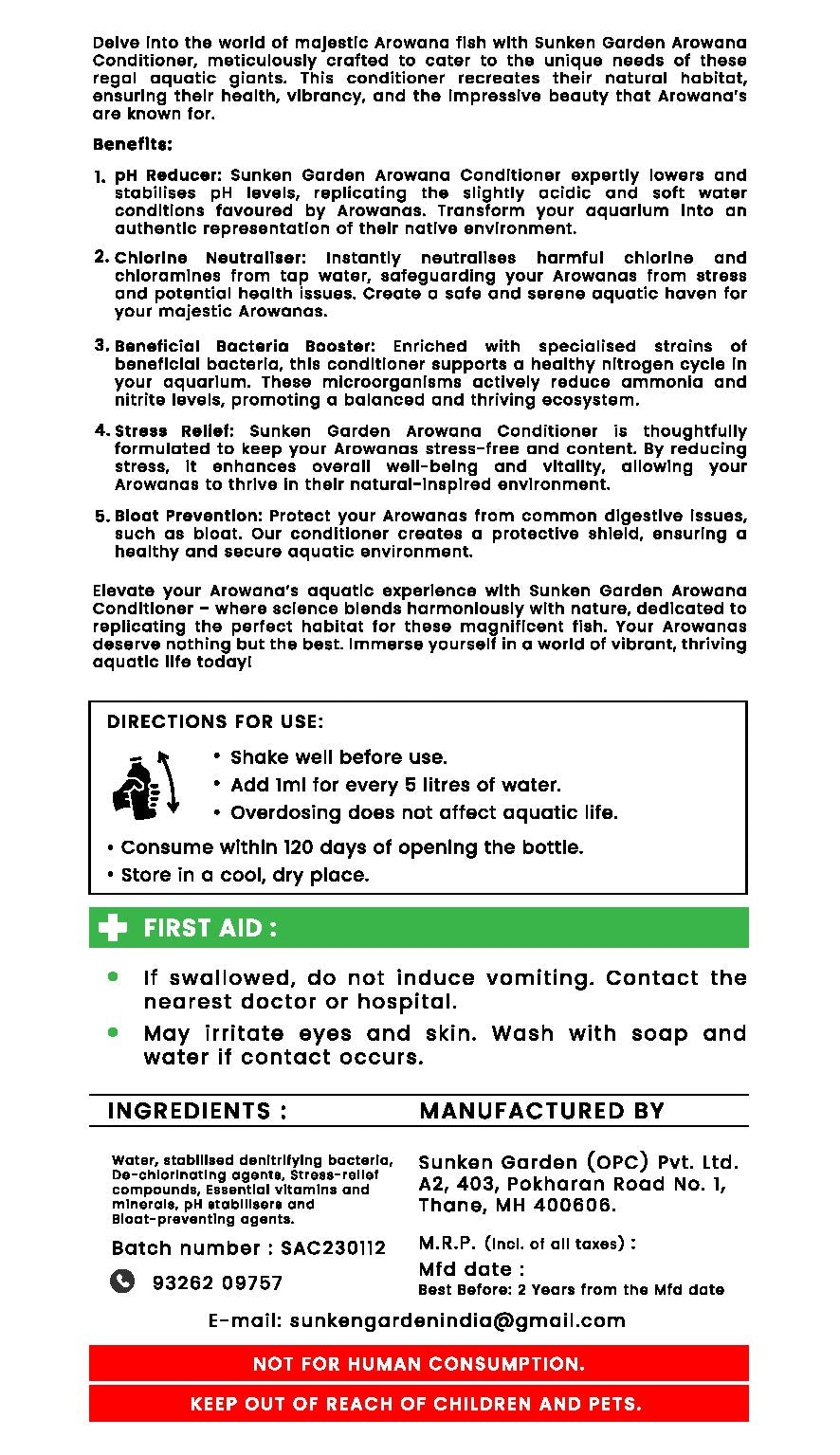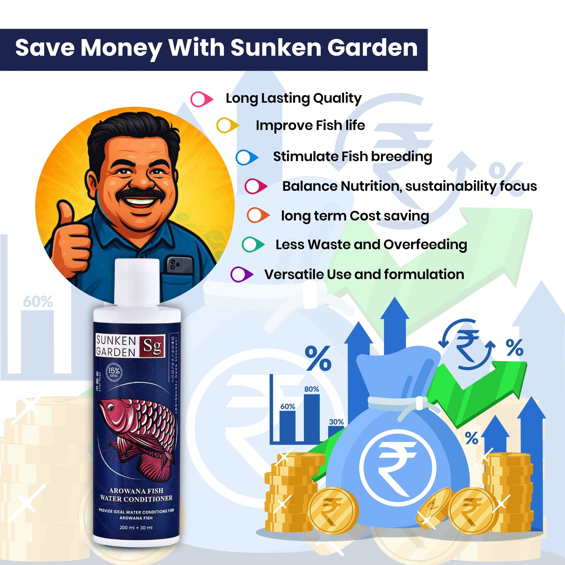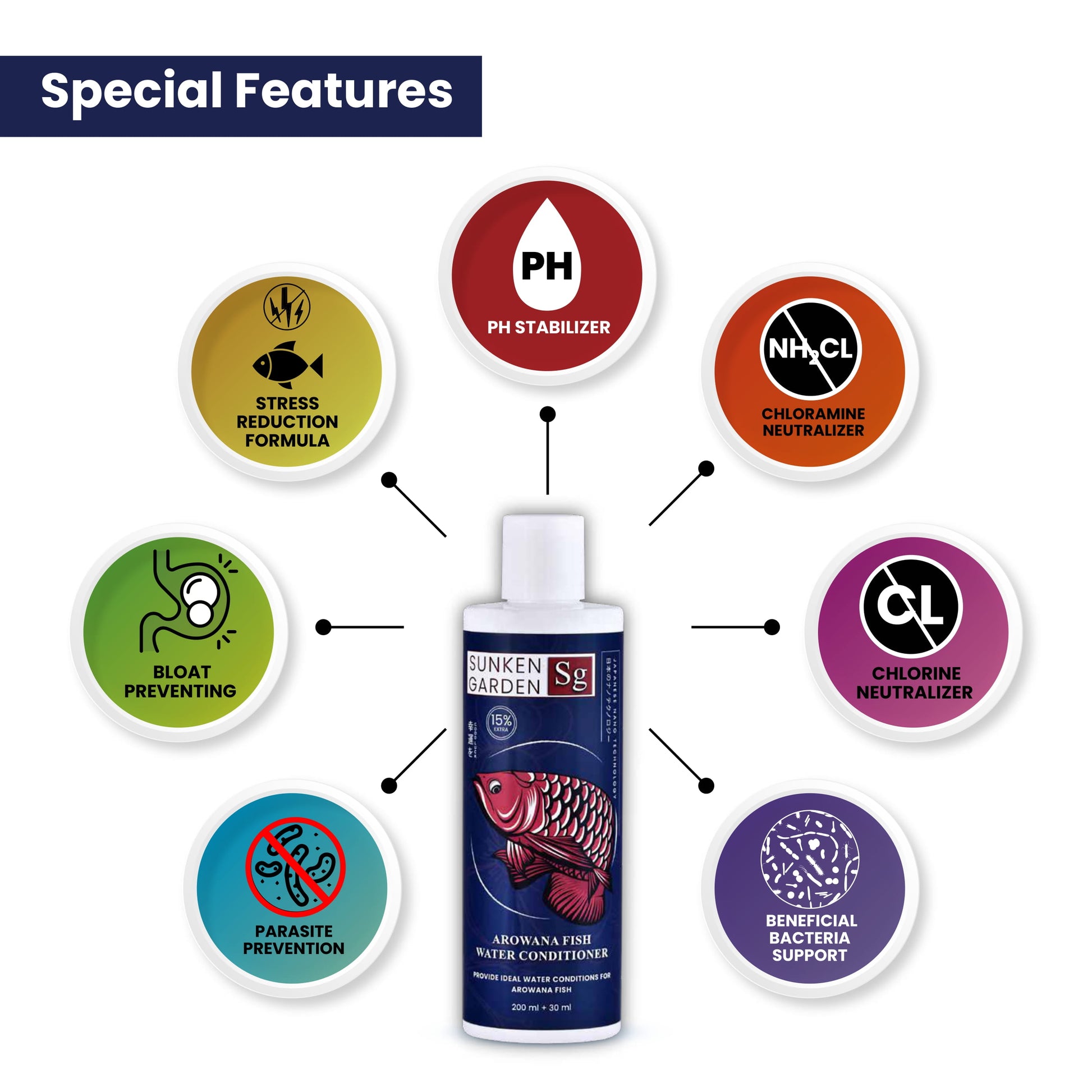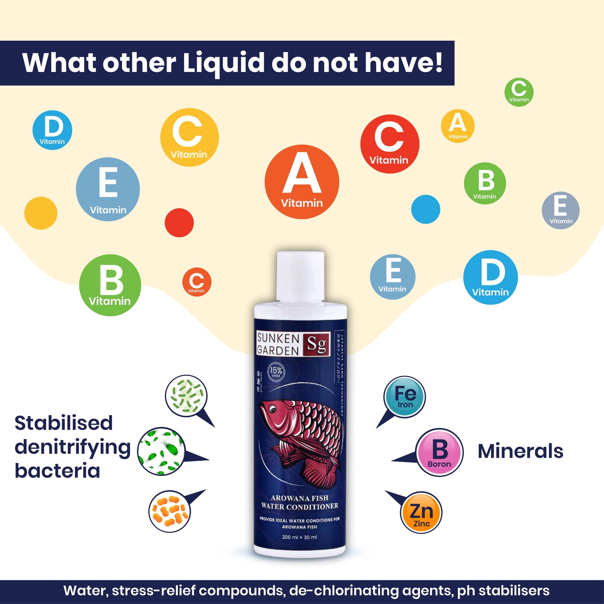 With Sunken Garden Arowana Water Conditioner, you're not just changing water, you’re restoring royalty.