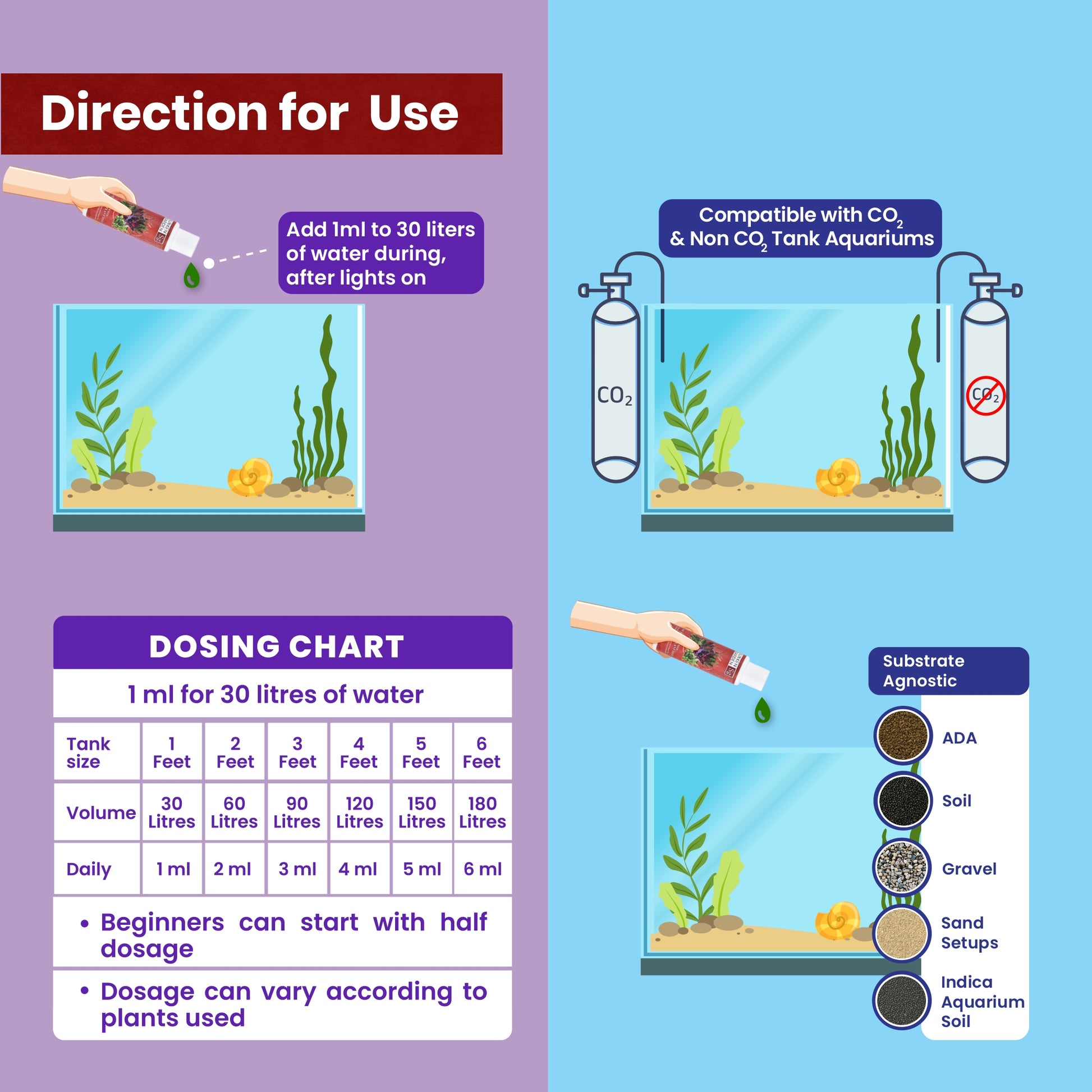 ✔ Apply 2–3 times a week or daily in smaller doses for CO₂ setups