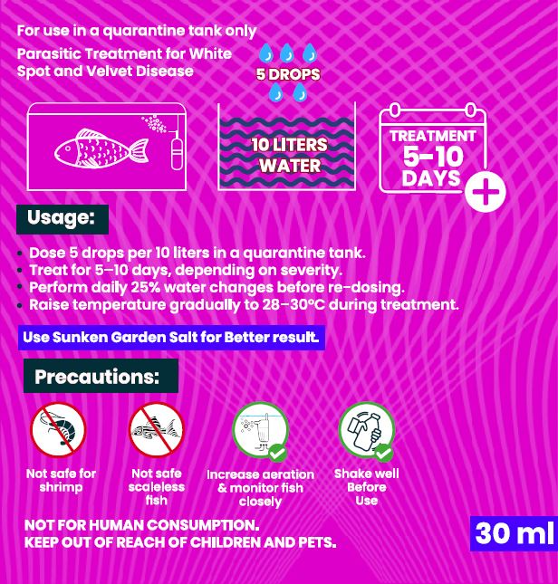 ✔ Ich & Velvet Eliminator: Kills parasites fast without harming good bacteria.